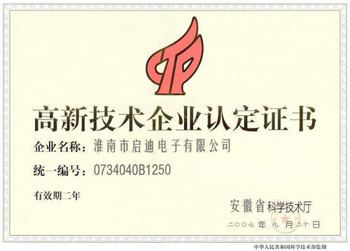 我公司被安徽省科學技術(shù)廳認定為高新技術(shù)企業(yè)